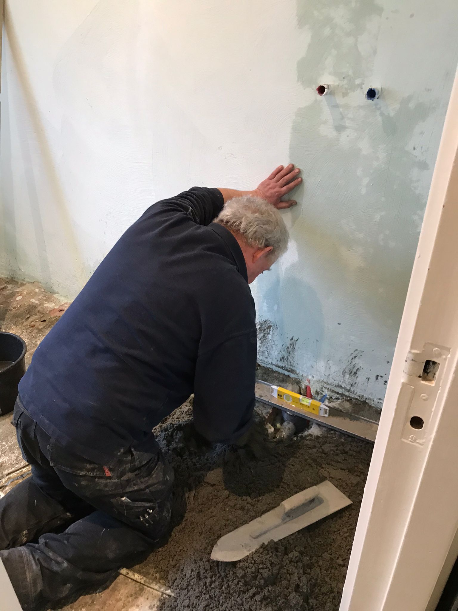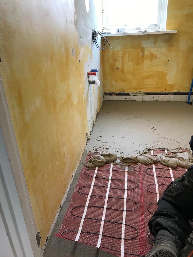 We hebben de aanleg van een nieuwe badkamer gerealiseerd. Deze klus bevatte het omleggen van nieuwe leidingen, aanleggen vloerverwarming, storten betonvloer, tegelen, stucen en aansluiten sanitair.