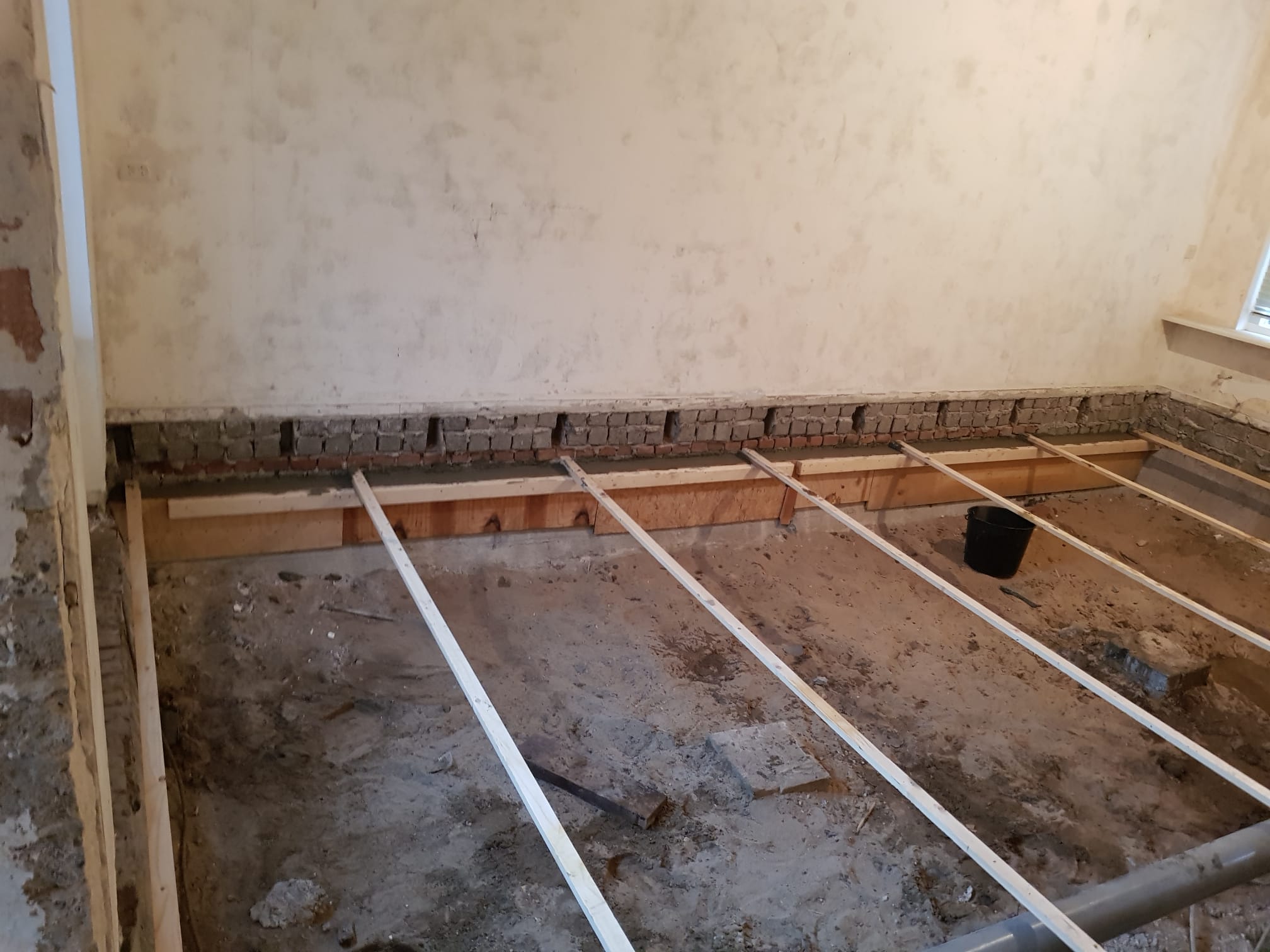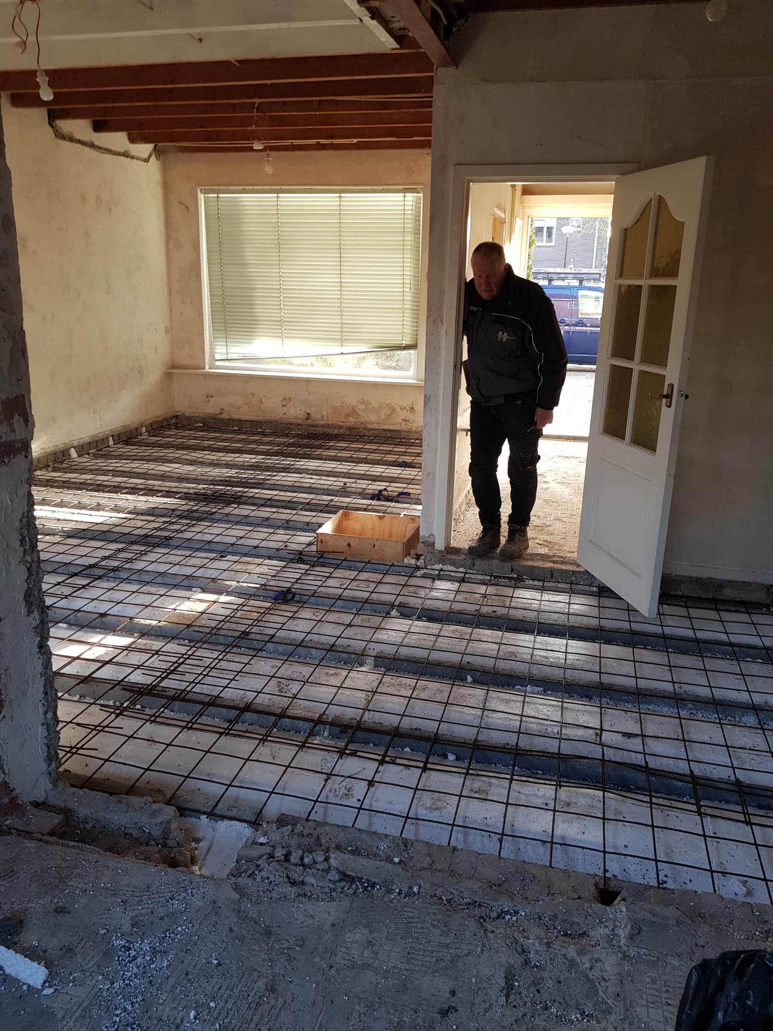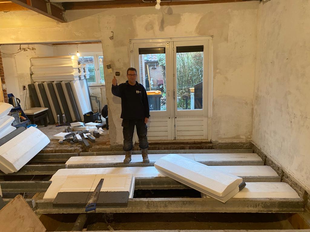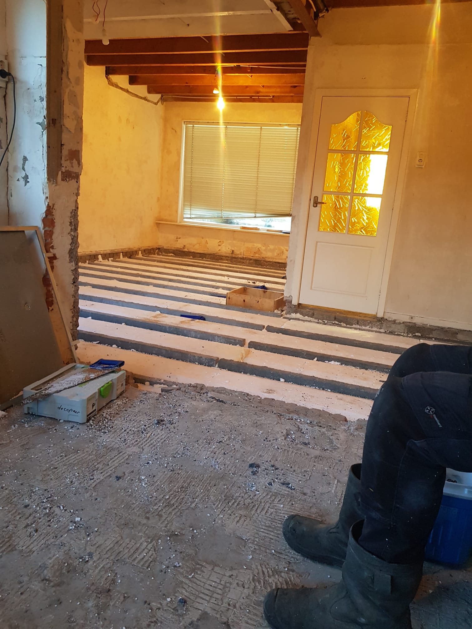 In een huis in Maarssen-dorp is een geïsoleerde vloer aangebracht ter verduurzaming van de woning. De oude vloer is vervangen door lichtgewichtbeton en hoogwaardig isolatiemateriaal, waar een nieuwe vloer overheen gelegd kan worden.
